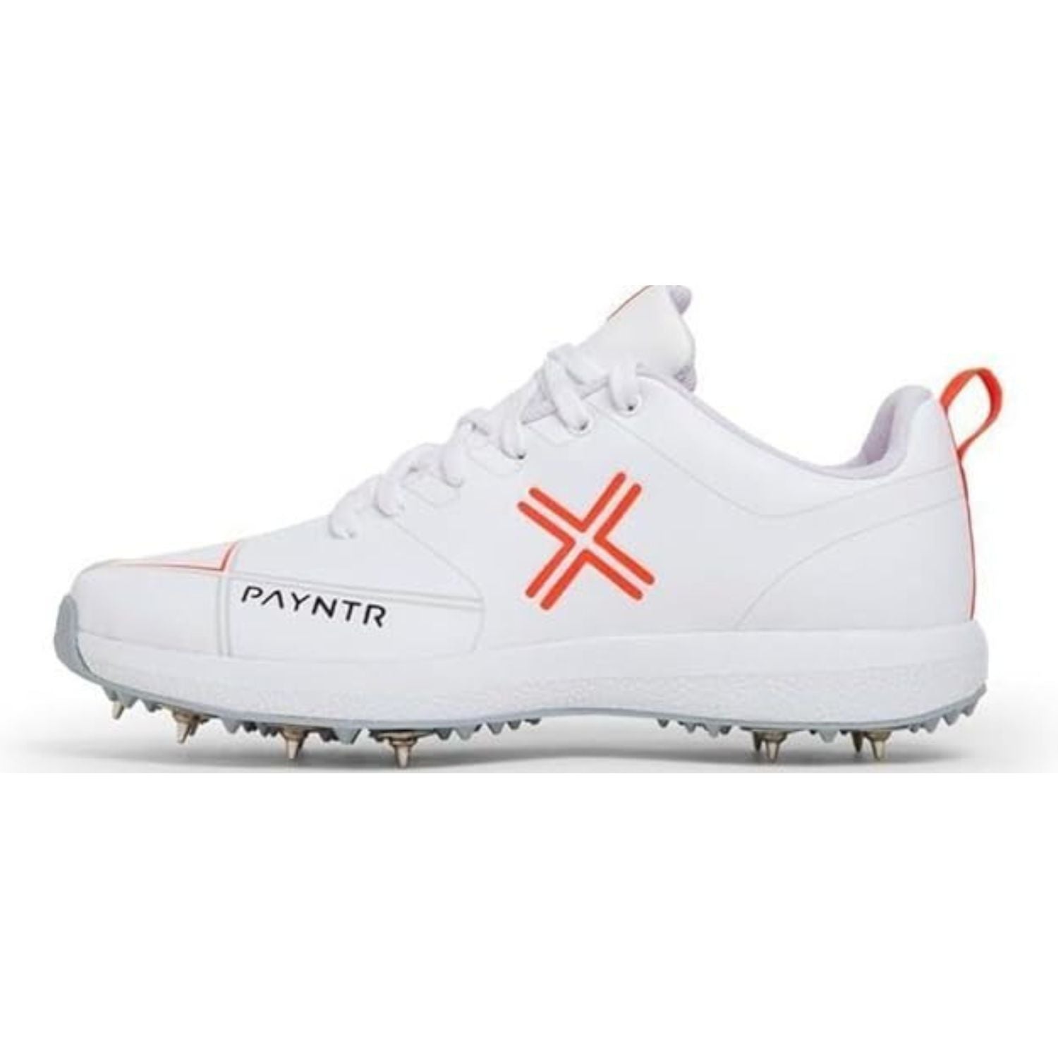 Payntr X Batting Metal Spike Cricket Shoes – White | PU Upper, 7/4 Metal Spike Plate, EVA Midsole, Reinforced Toe, Honeycomb Insole | Lightweight Comfort for Batters & All-Rounders